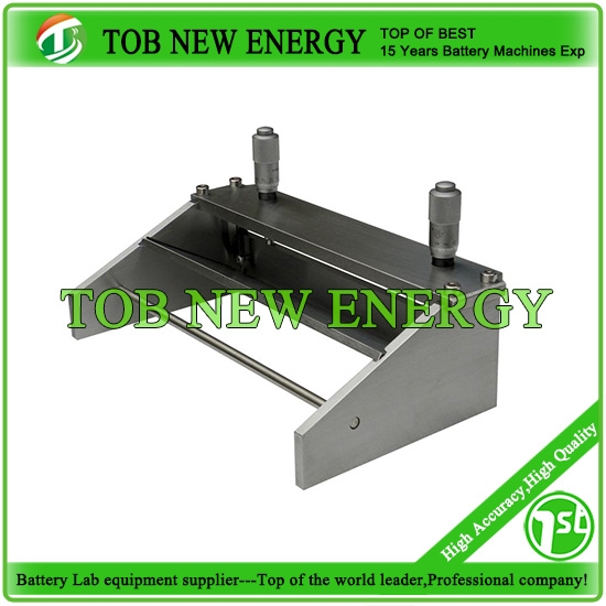 The operator sets the blade clearance by adjusting the micrometers. This is excellent tool to make quality film for material research laboratories to make ceramic tape casting, battery electrodes, and various coating at lower cost. Stainless steel knife blade with precision ground edge.