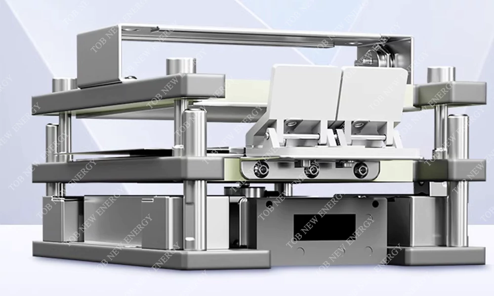 The TOB-F-PT Lithium-ion pouch cell charge and discharge heating and pressurizing clamp designed for precise testing of lithium-ion pouch cells, this fixture integrates accurate temperature control (heating/cooling) and uniform pressure application. It effectively suppresses cell swelling during charge/discharge cycles. By simulating realistic pressure and temperature conditions, it significantly enhances the accuracy, repeatability, and comparability of key electrical performance data (capacity, impedance, cycle life) while improving test safety. An essential tool for battery R&D, quality control, and performance evaluation.