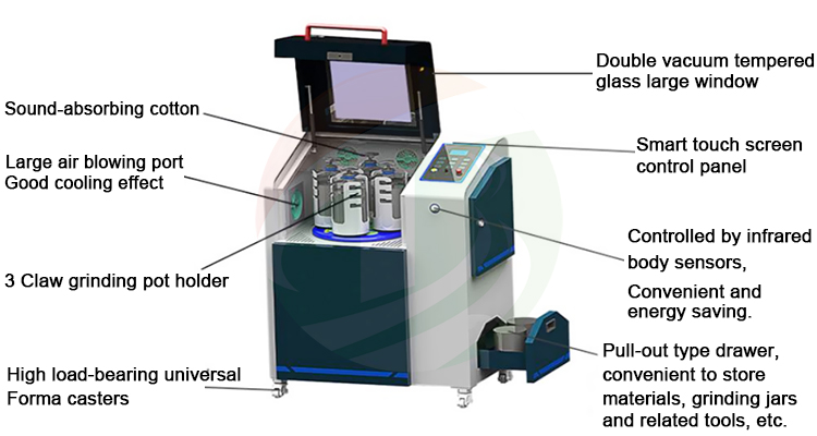 3.The ball milling tank adopts planetary motion, with high ball milling efficiency and fine particle size;