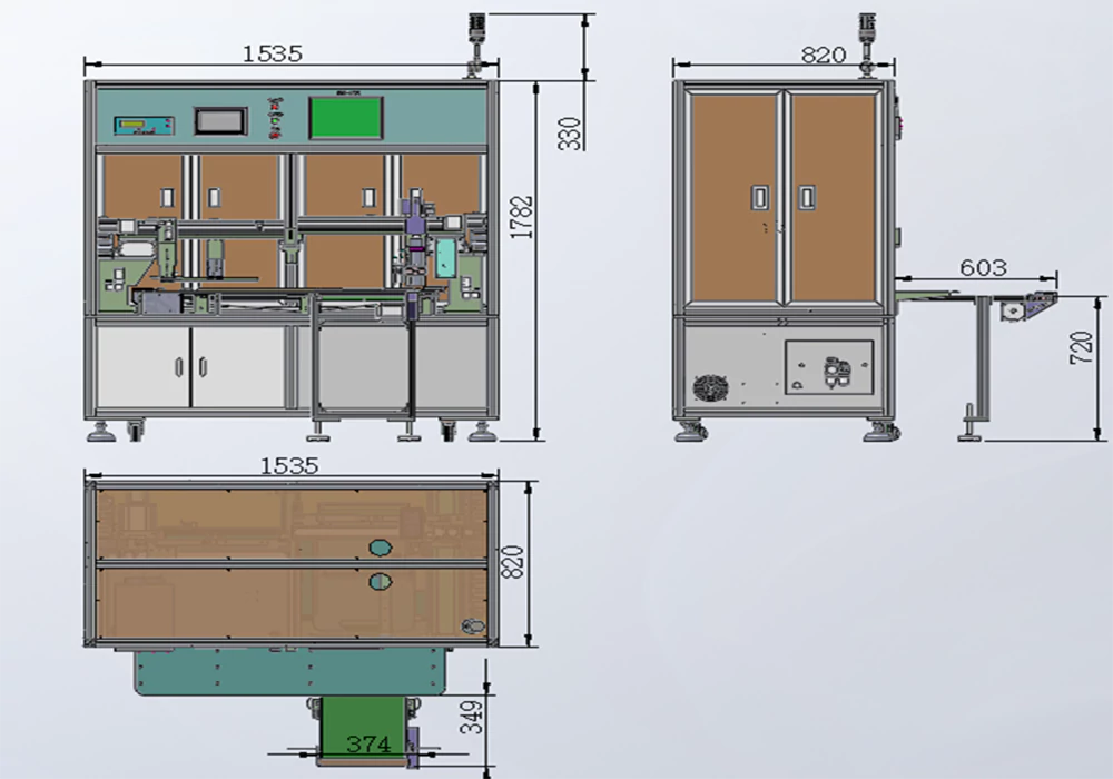 1560*1423*1770mm(L*W*H)mm; Note: The actual size is subject to the final design size (excluding three-color lights) |