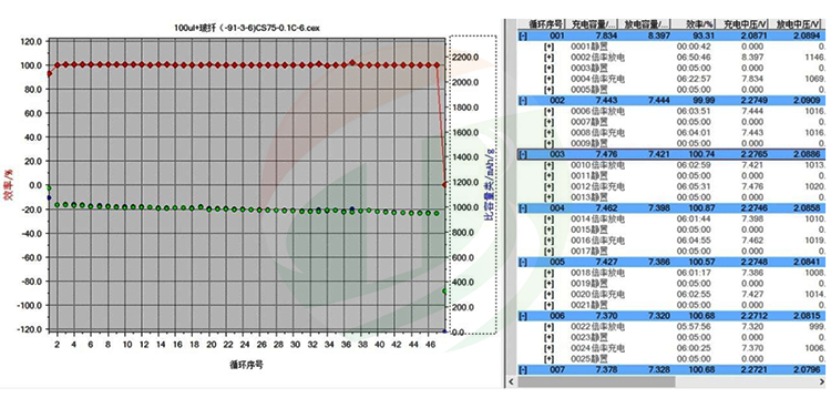 In a 400Wh/kg pouch cell battery, the first capacity of the material is 1200mAh/g, after 70 cycles,the capacity retention rate is >80% .