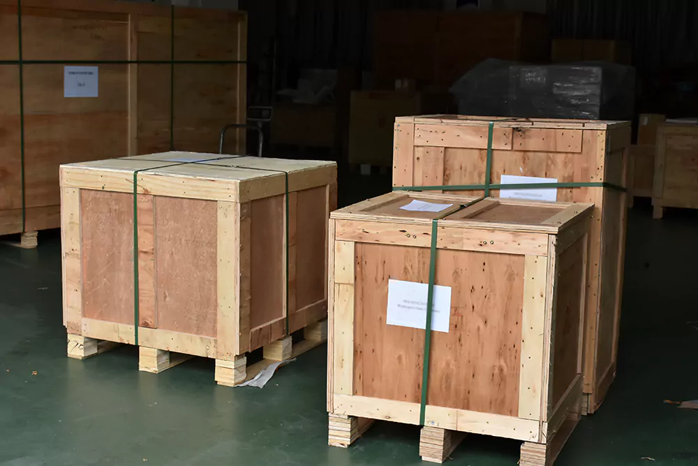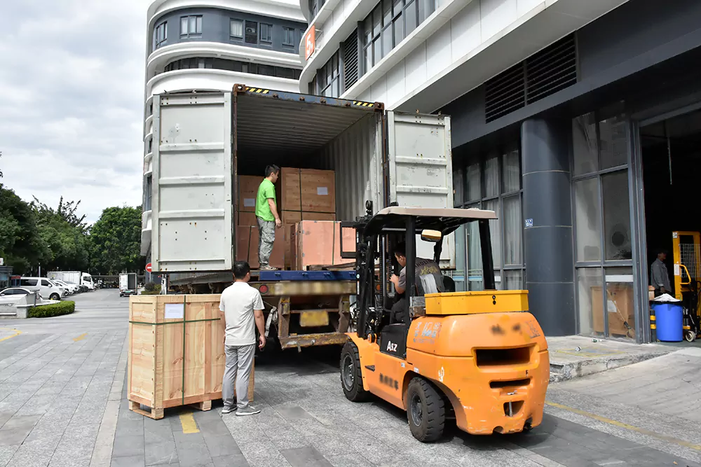 The equipment has been packed according to standard requirements and is currently being loaded into containers for shipment.